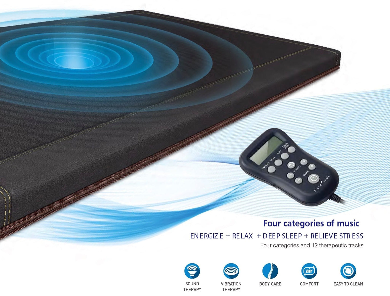 Brain waves determine your state - whether you are alert, sleepy, or calmly relaxed. The BioAcoustic produces specific musical frequencies that your mind synchronizes to, and helps you shift your state when you need support. Great to use alone OR when layered with your BioMat for a 4 in 1 Body Mind Treatment: Infrared Heat + Negative Ions + Vibrational Massage + Sound Frequency