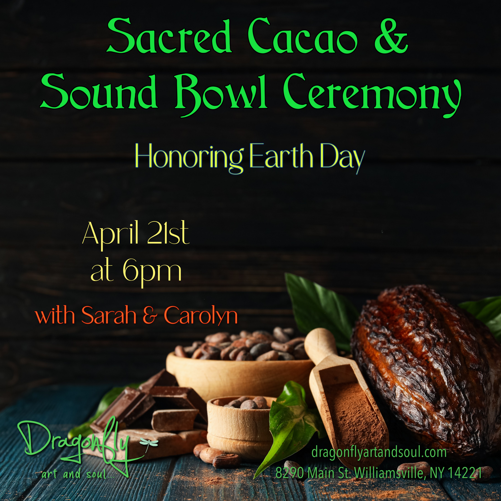 We’ll gather, sip warm ceremonial cacao, set intentions for Mother Earth (and ourselves), and let this beautiful heart-opening plant spirit do what she does best.