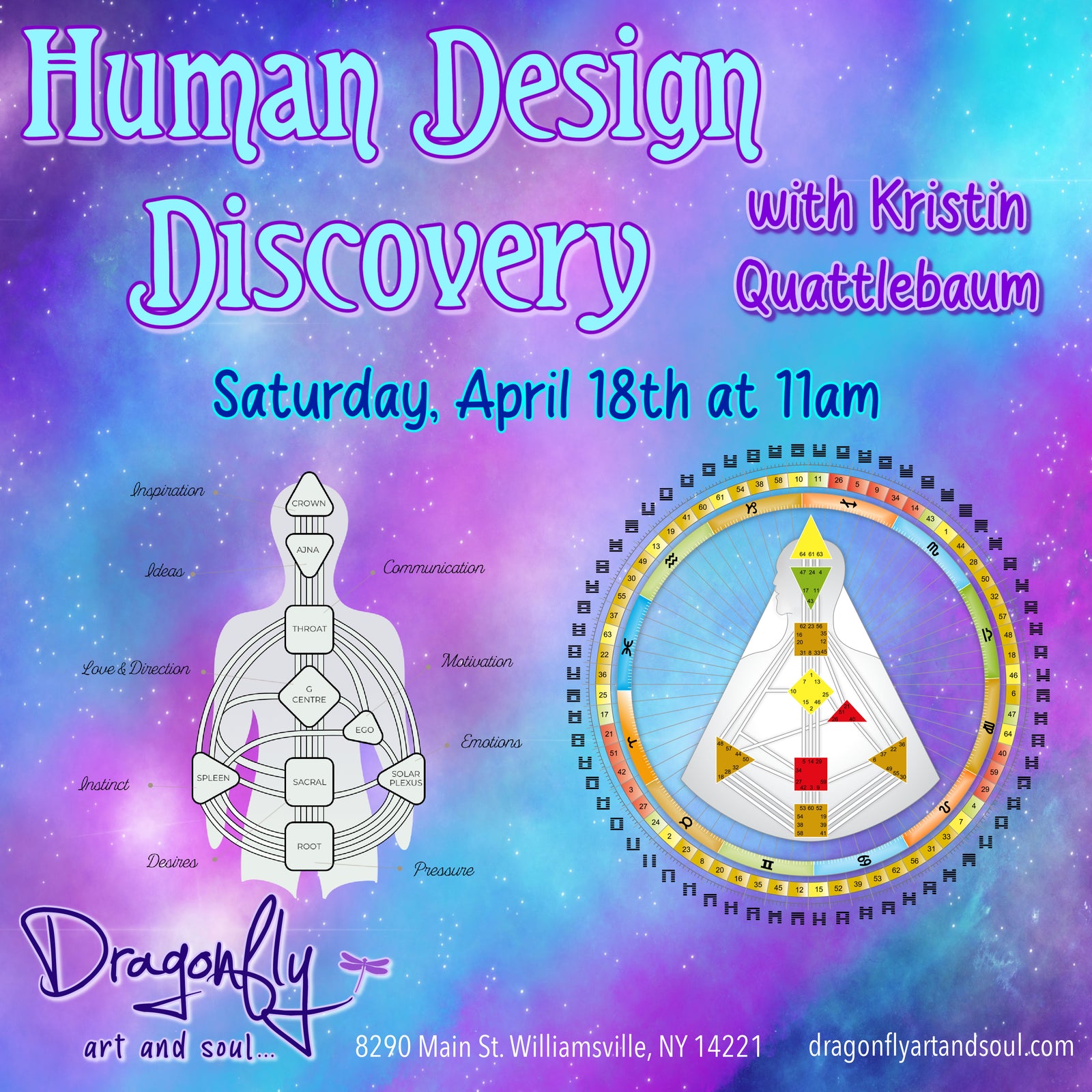 Facebook EventHuman design (HD) is a mix of science + spirituality; it shows you who you came here to be. This will be an exploratory session to help you understand the 4 energy types + definition so you have insight into the way you were designed to interact in the world, work + make decisions, with less resistance + more ease. It will also identify themes that tell you when you’re in alignment + not. Walk away with your HD blueprint + clues of where to begin your journey to deeper alignment. Exact birth info (including time) required, if you want to apply this knowledge real-time.