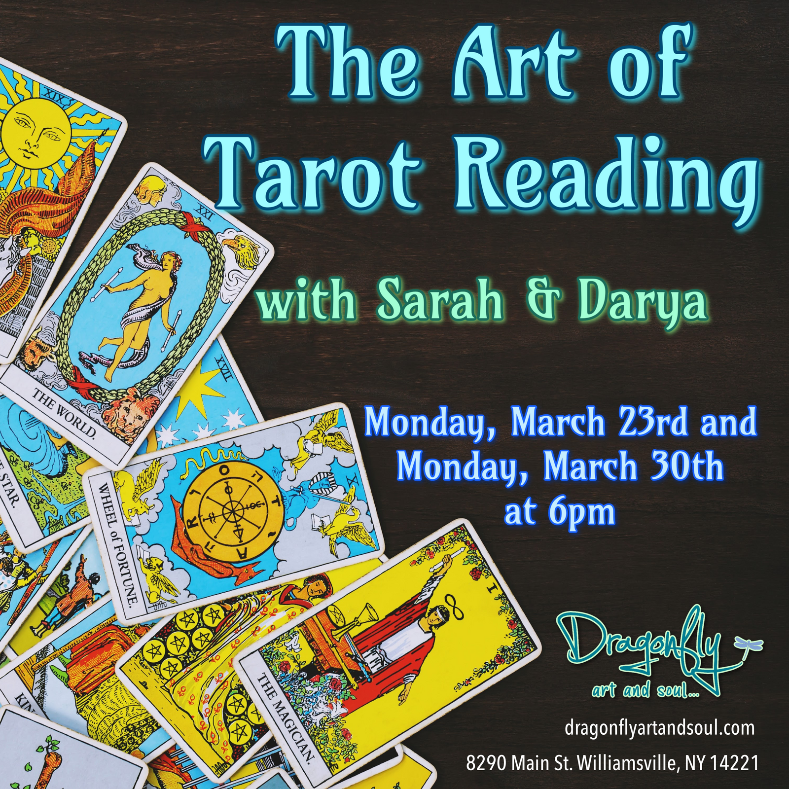 Facebook EventIn this two-evening experience, we will explore tarot as a tool for intuition, insight, and personal empowerment. Whether you are brand new to the cards or looking to deepen your confidence, this class will help you trust what you already sense.